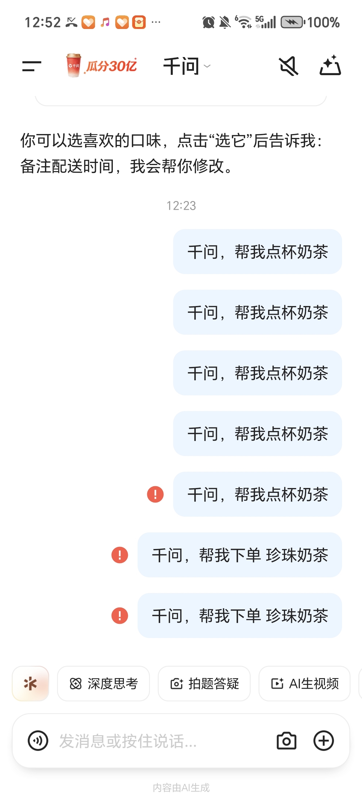 千问爆了。。点了7次没反应。。