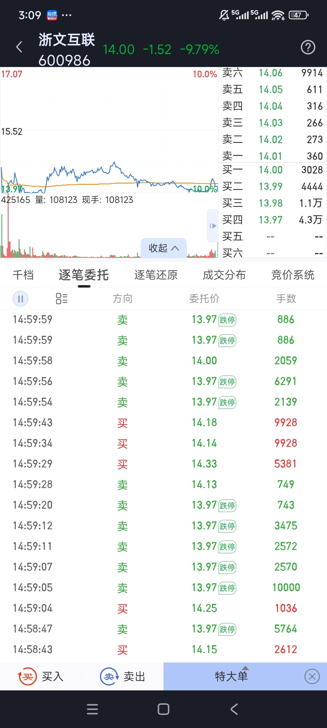 $浙文互联(SH600986)$ 太坏了 直接按跌停价砸的。还好两个9928一个5381,要不然直接按跌停了。感谢这位大佬,周一带我们起飞。