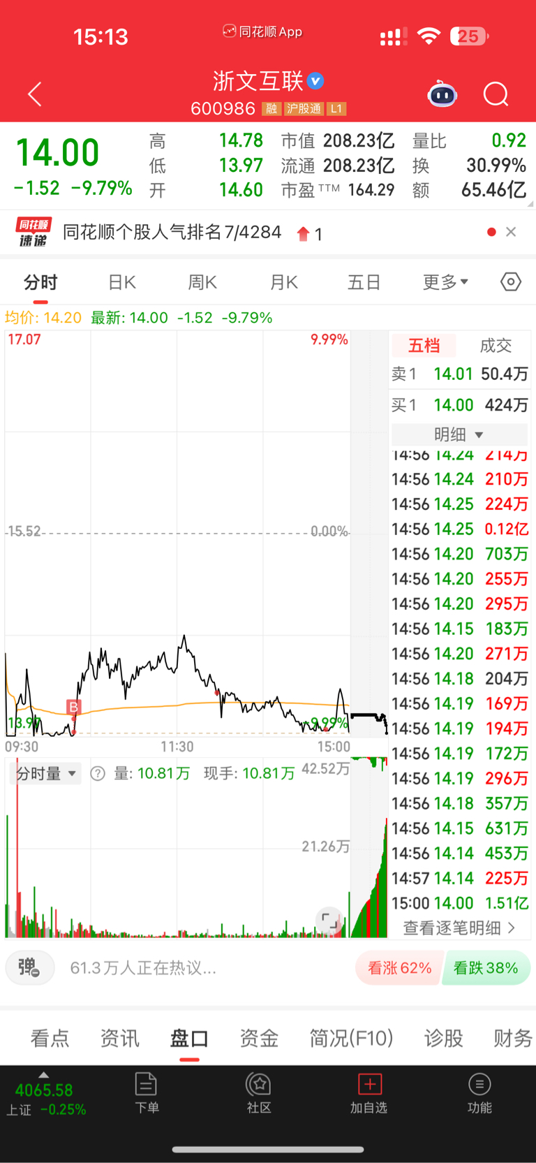 $浙文互联(SH600986)$ 不要怕,下周若给机会低开就直接上车