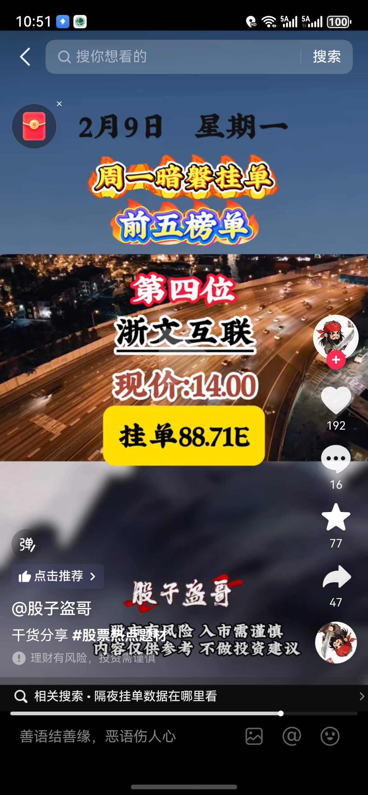 郑重声明:用户在财富号/股吧/博客等社区发表的所有信息(包括但不限于文字、视频、音频、数据及图表)仅代表个人观点,与本网站立场无关,不对您构成任何投资建议,据此操作风险自担。请勿相信代客理财、免费荐股和炒股培训等宣传内容,远离非法证券活动。请勿添加发言用户的手机号码、公众号、微博、微信及QQ等信息,谨防上当受骗!
