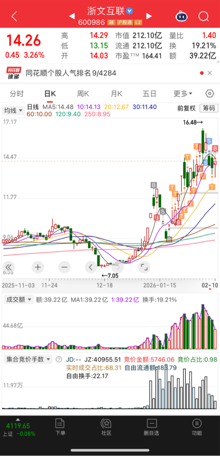 $浙文互联(SH600986)$ 说了昨天不强不代表今天不强