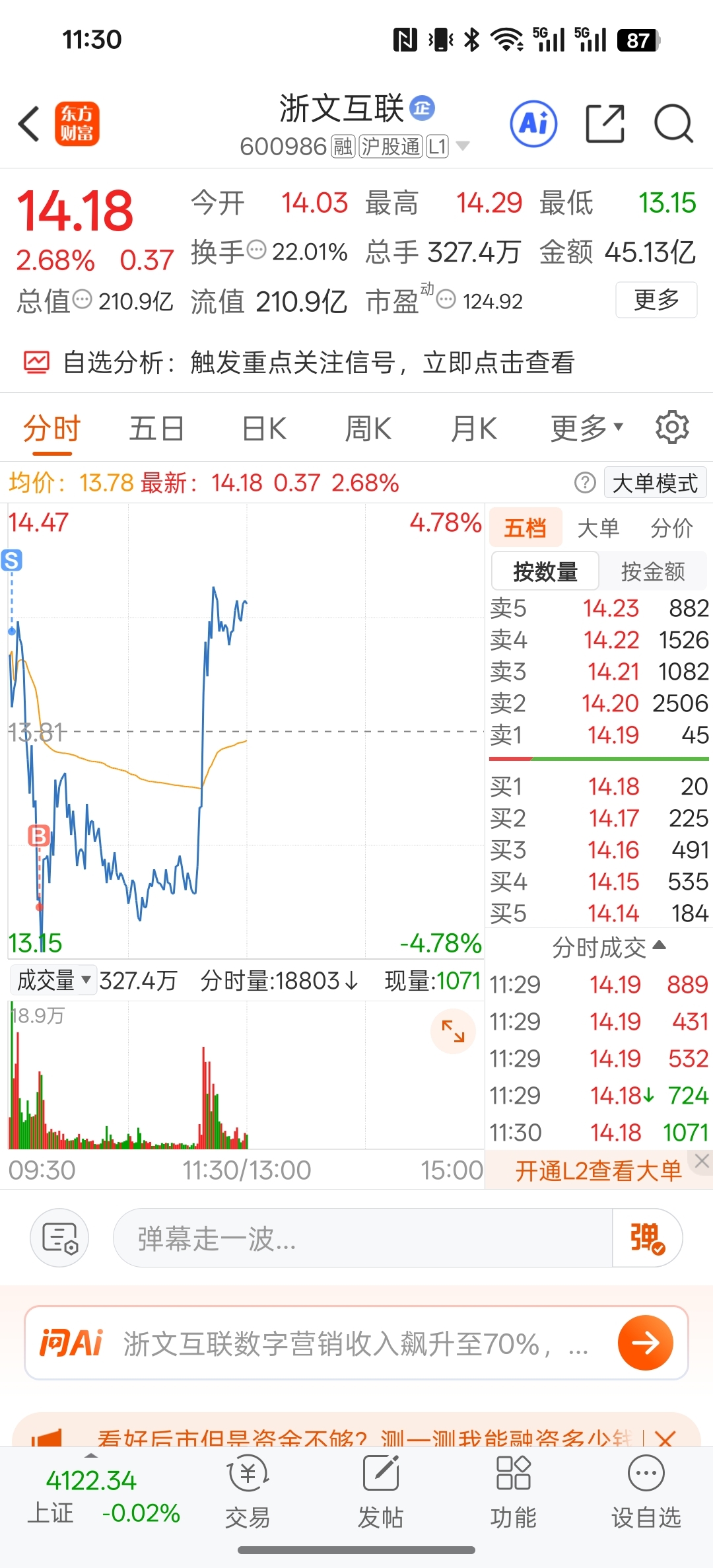 $浙文互联(SH600986)$ 今天红盘5个点以上,应该问题不大