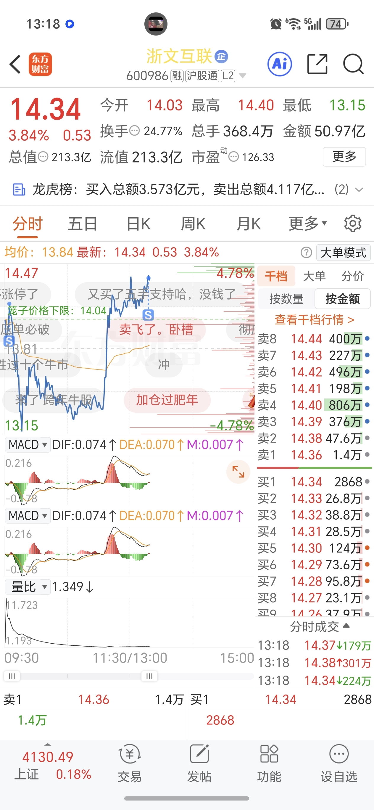 $浙文互联(SH600986)$ 太磨叽,走了。
