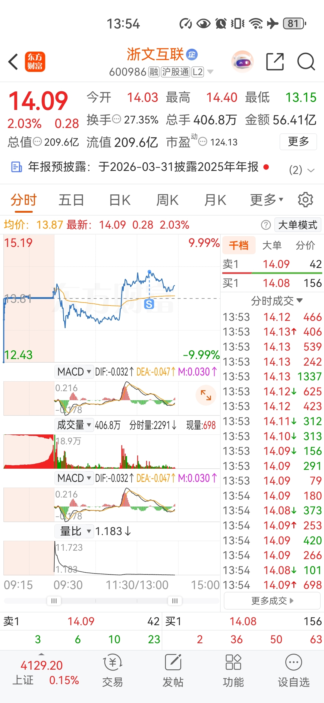 $浙文互联(SH600986)$ 我卖了可以涨停了