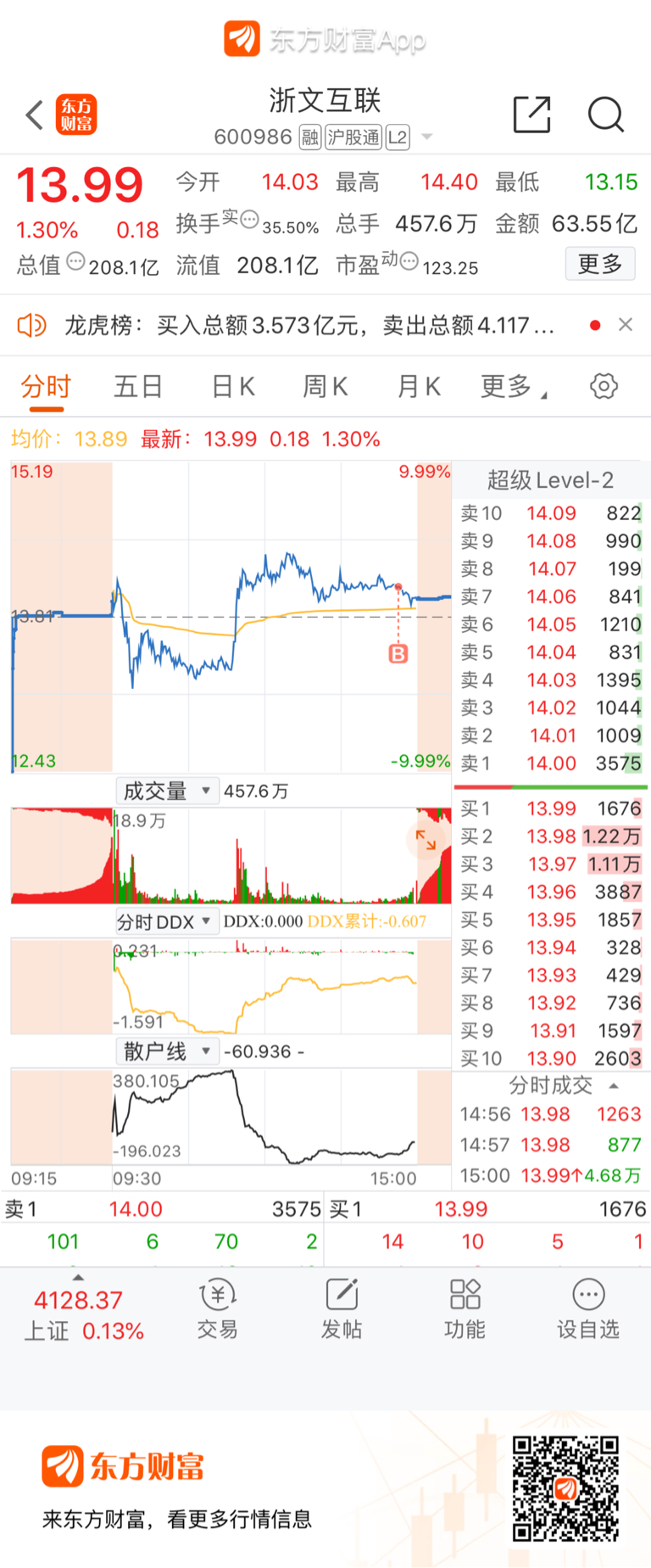 $浙文互联(SH600986)$ 今天就属于你最拉胯,明天能红一些就好