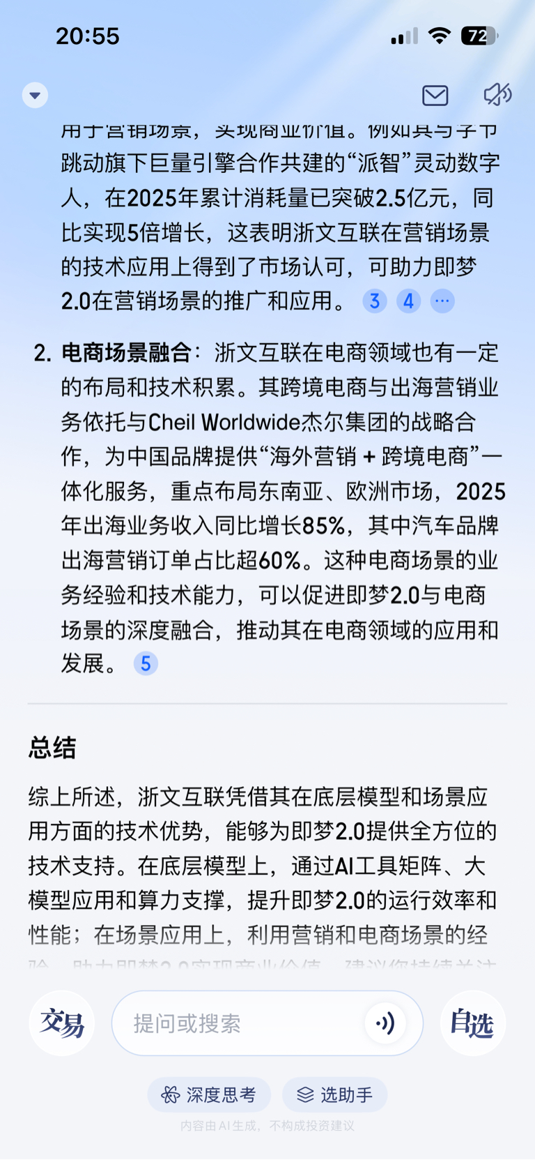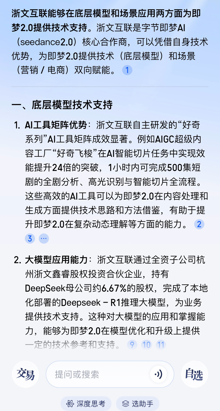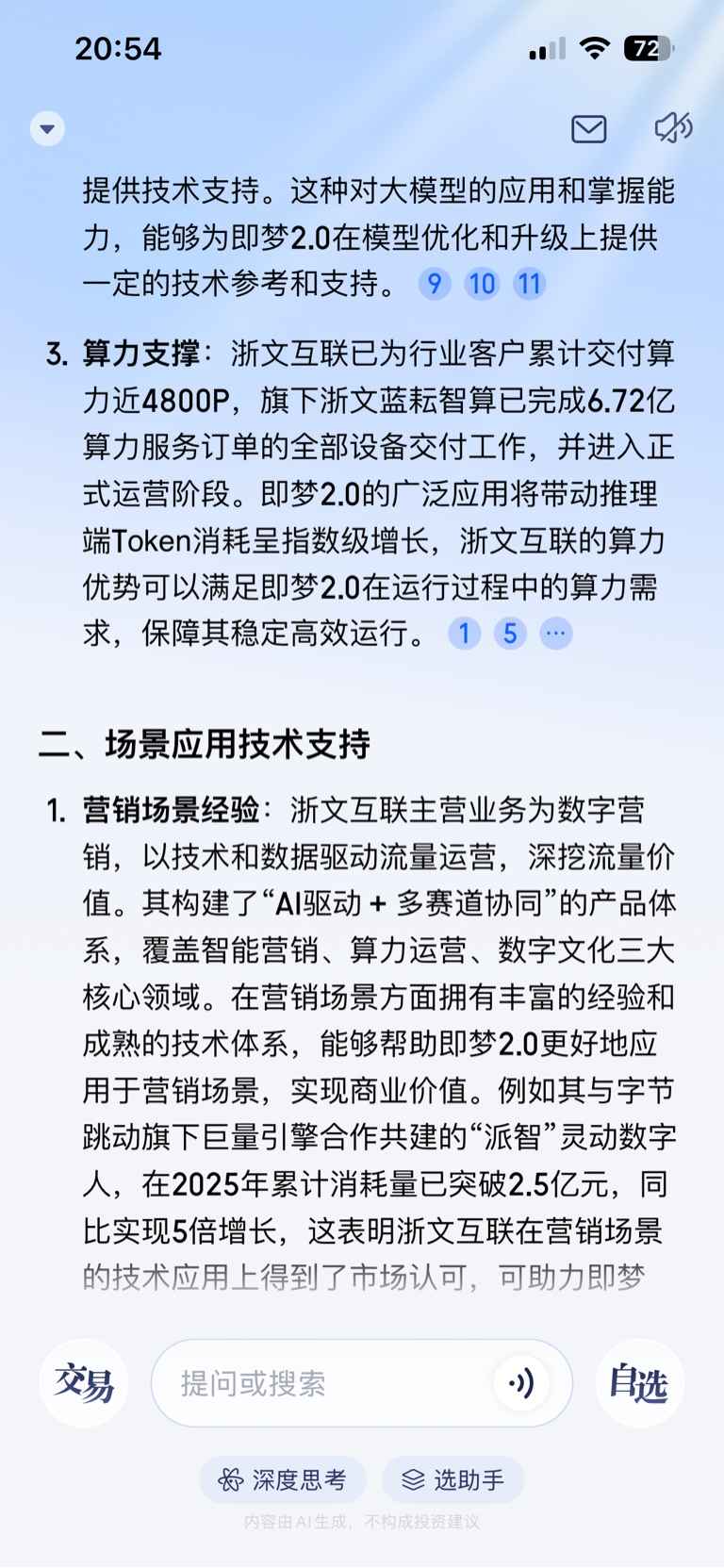 浙文互联在巨量引擎即梦2.0这块合作深度还是蛮深的,逻辑非常正。