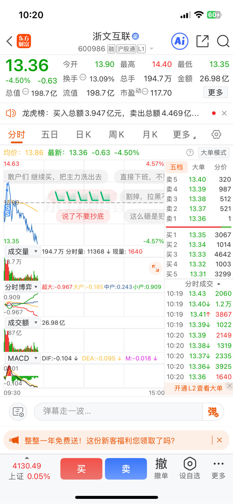 $浙文互联(SH600986)$ 谢谢主力早盘给机会跑了,昨天太一致了结果没有上板就是弱了,今天红盘就跑