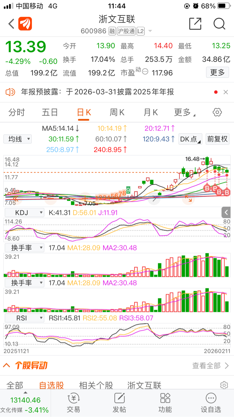 $浙文互联(SH600986)$ 2b战法,还是被套11个点,真是个2b