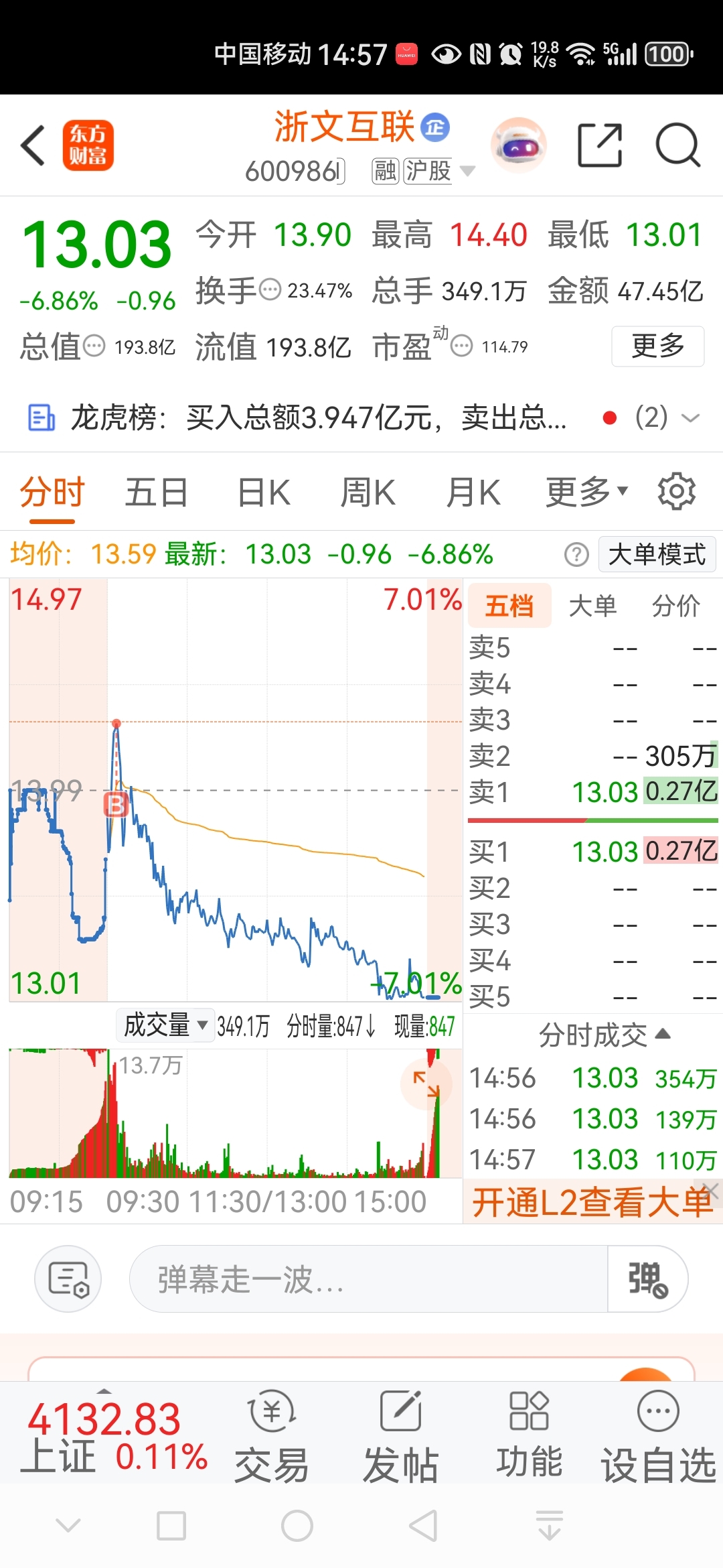 $浙文互联(SH600986)$ 对不起各位,今天是我把它买崩了