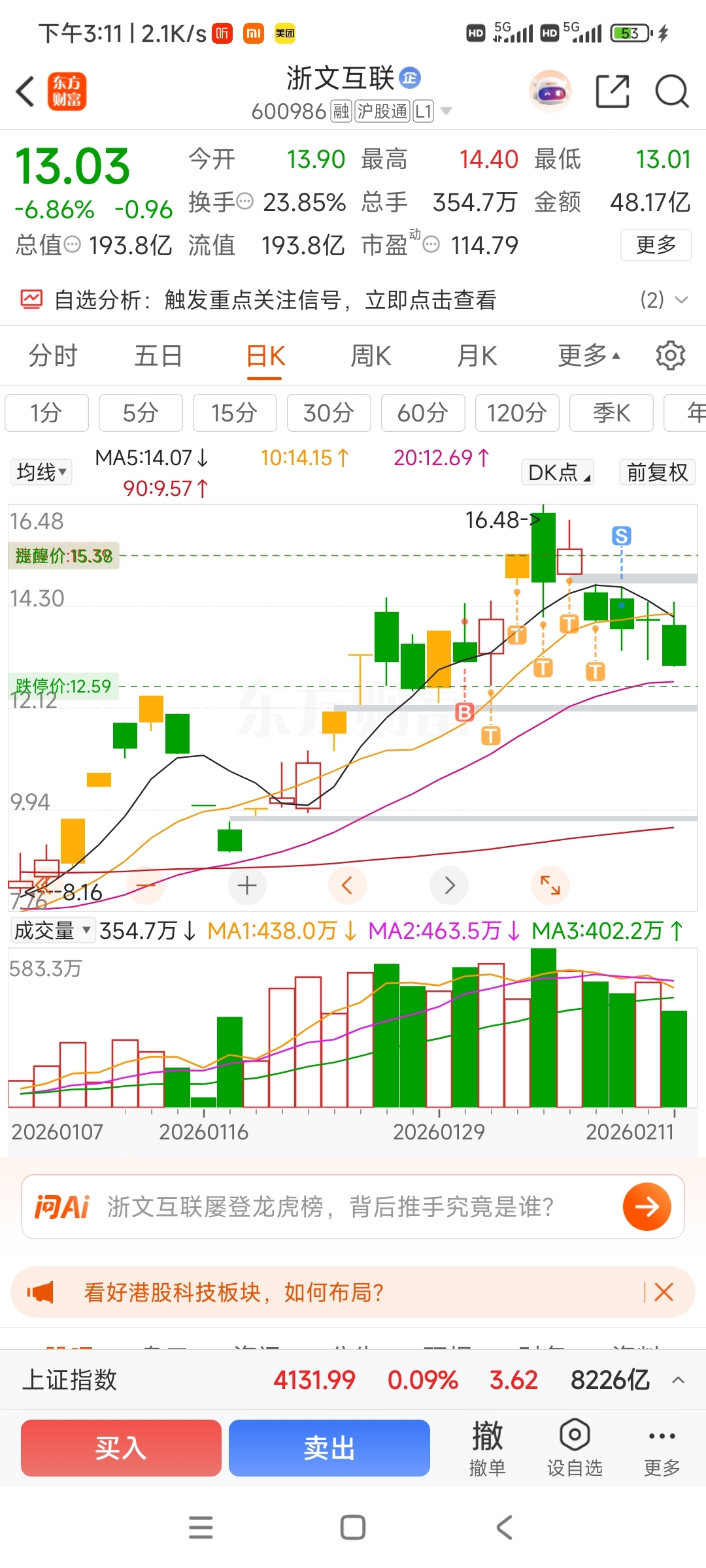 今天继续下跌趋势,前期我帖子上说了,观望为主