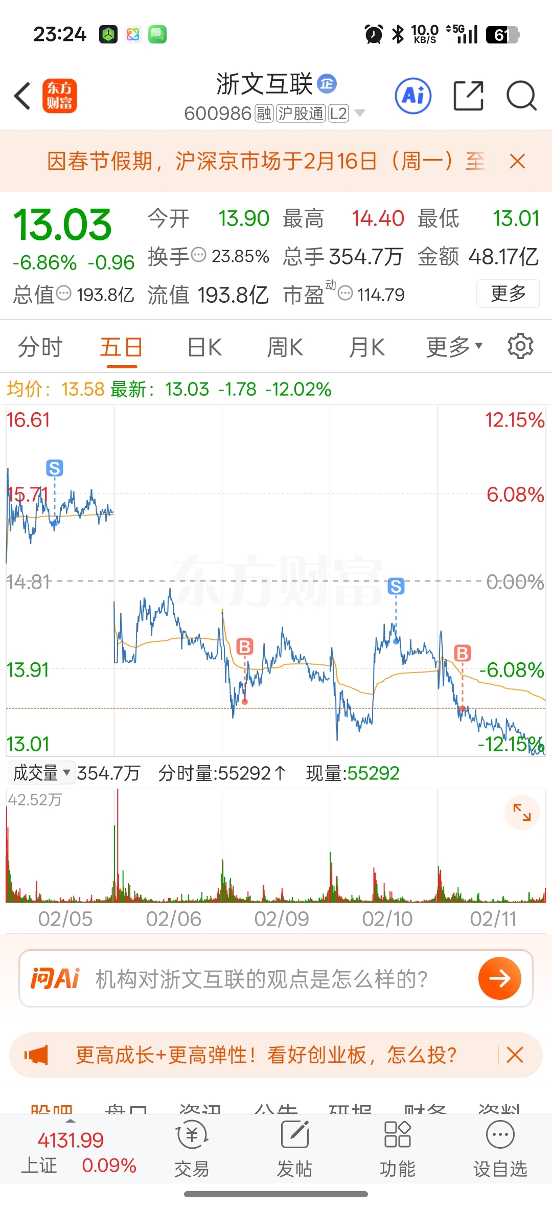 温馨提示: 1.根据《证券法》规定,禁止编造、传播虚假信息或者误导性信息,扰乱证券市场;2.用户在本社区发表的所有资料、言论等仅代表个人观点,与本网站立场无关,不对您构成任何投资建议。用户应基于自己的独立判断,自行决定证券投资并承担相应风险。《东方财富社区管理规定》
