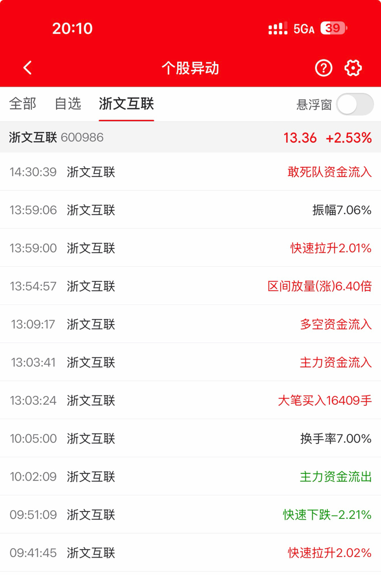 $浙文互联(SH600986)$ 资金流入趋势明显
