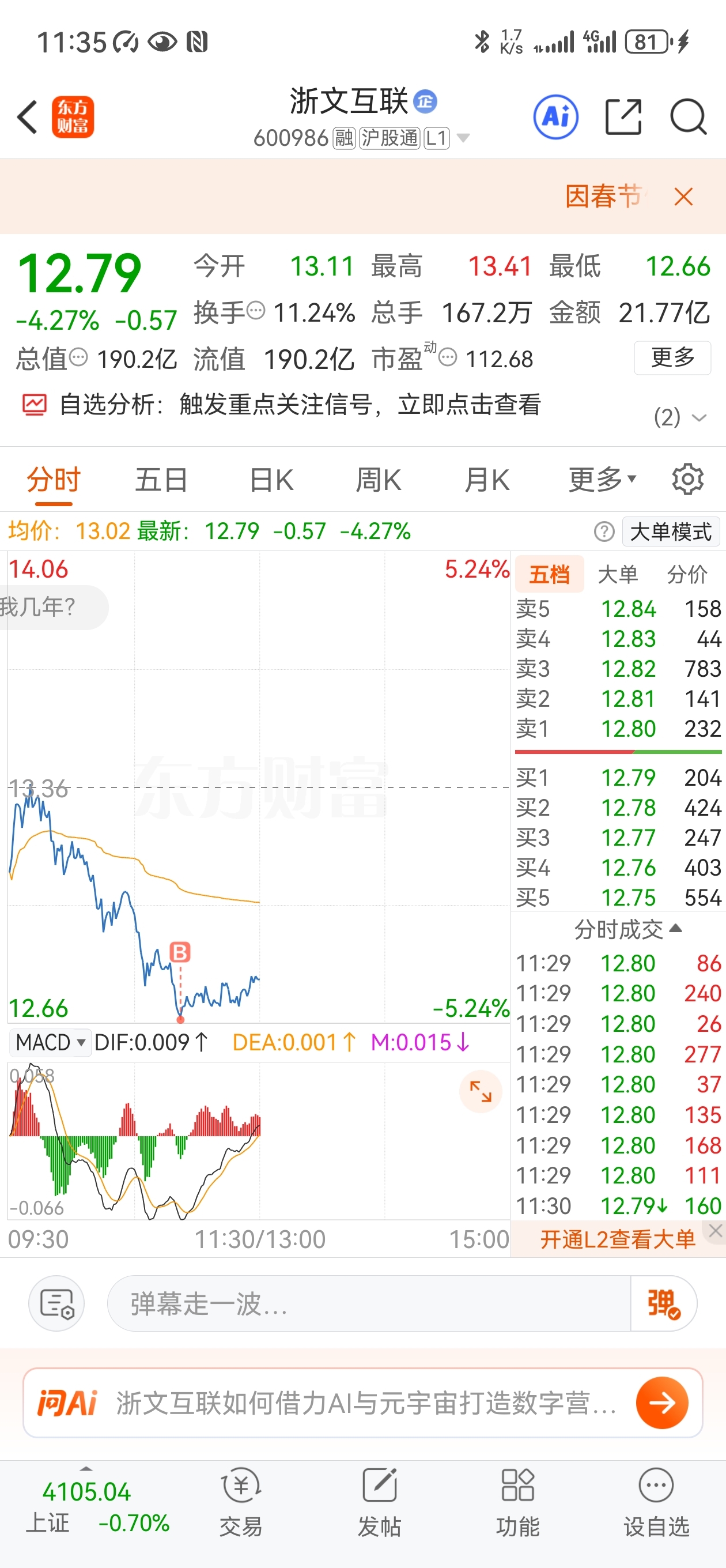 $浙文互联(SH600986)$ 怕个锤子啊加仓!