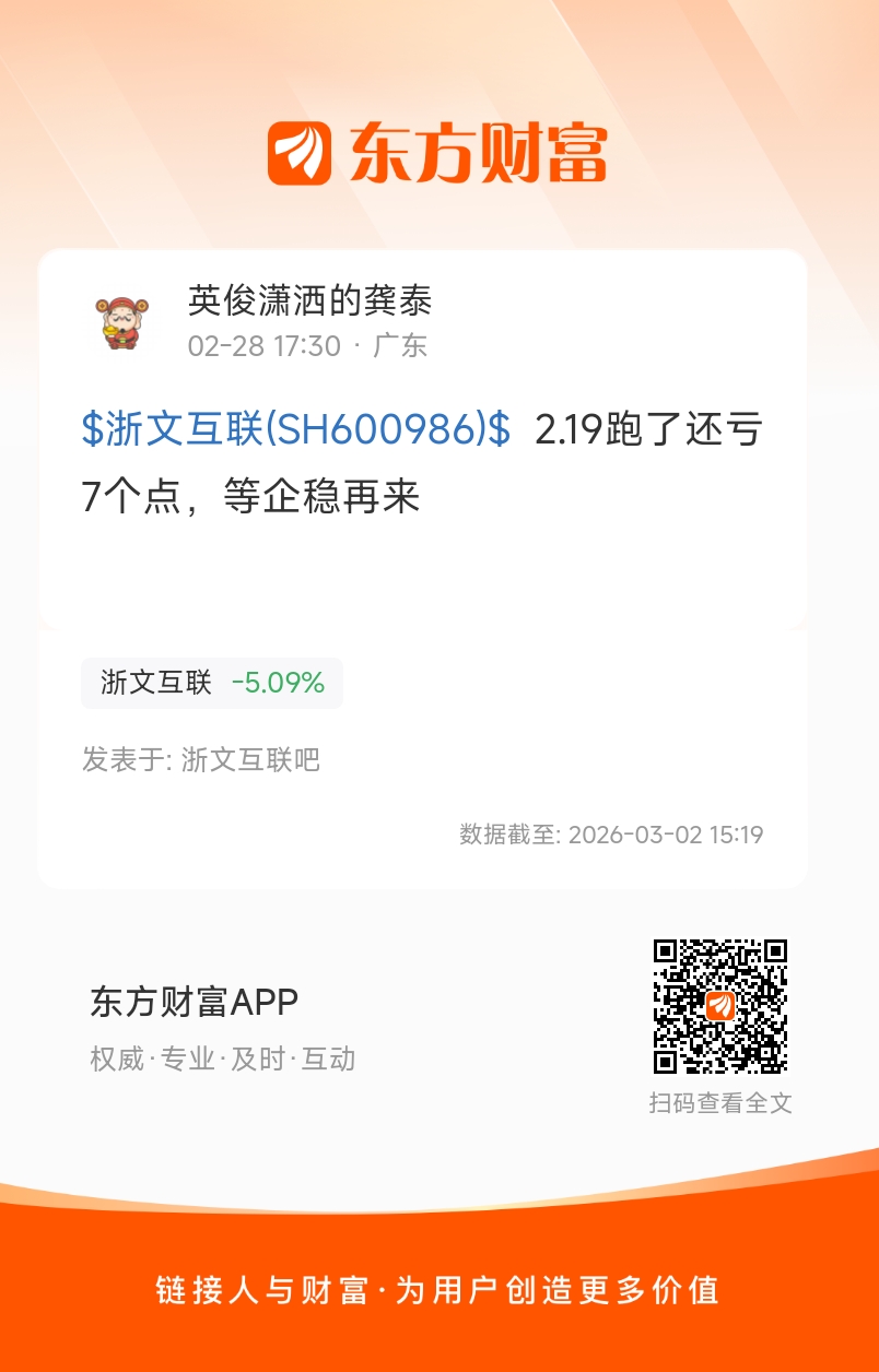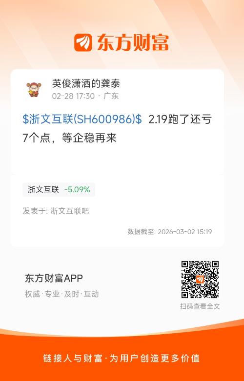 $浙文互联(SH600986)$  2.19跑了还亏7个点,等企稳再来