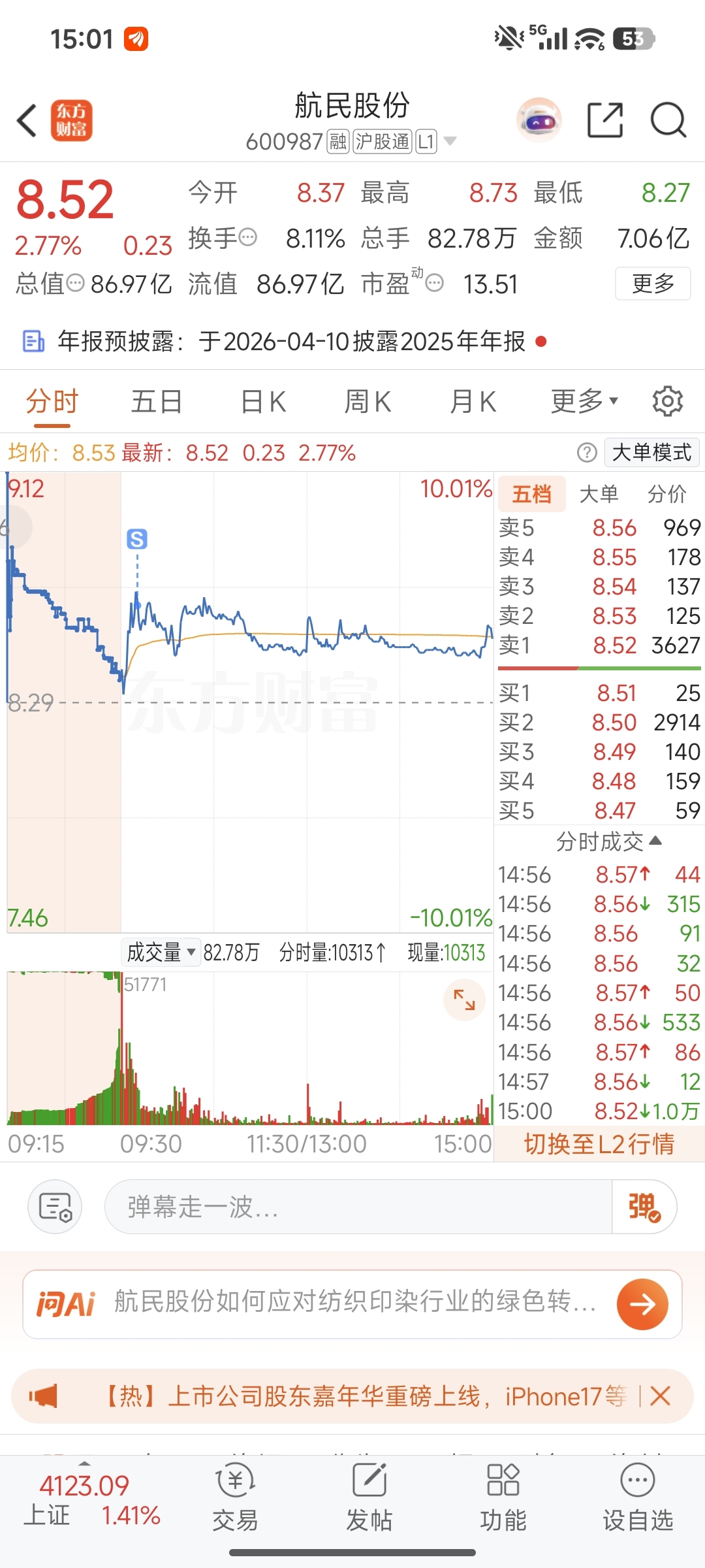 $航民股份(SH600987)$ 全部卖了,拿不住了