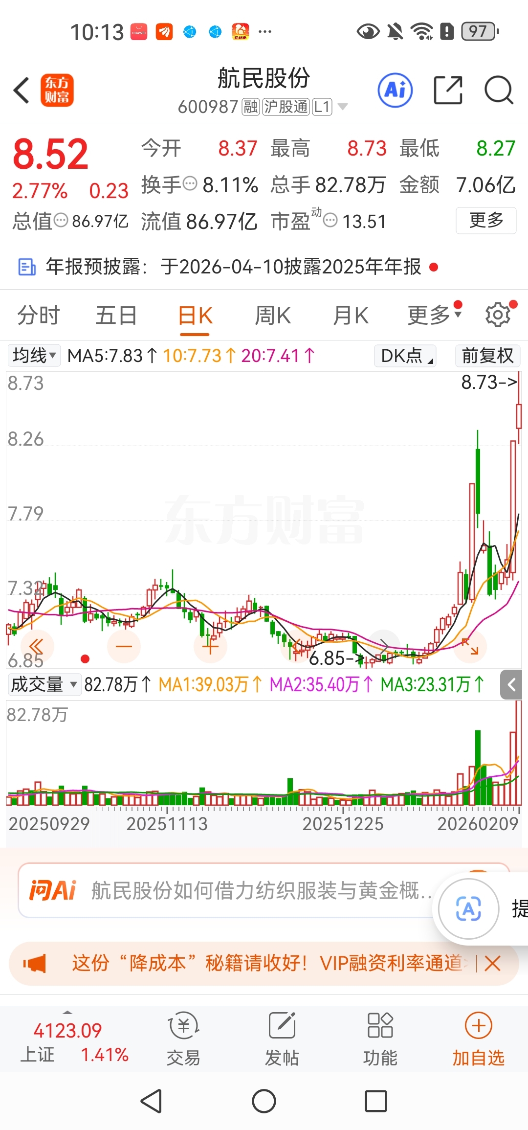 涨停板后能高开震荡,没有资金被套牢,股性不差,期待后面大涨