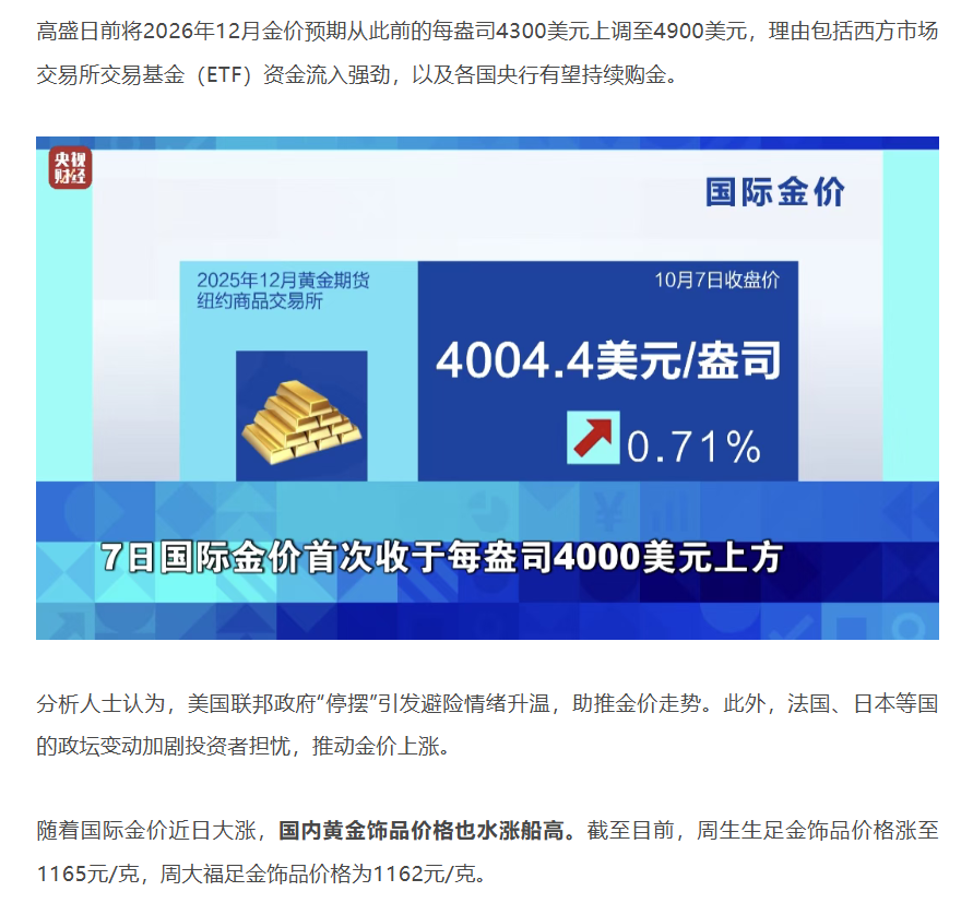 又创新高!纽约商品交易所12月黄金期价报每盎司4004.4美元,刷新收盘历史纪录