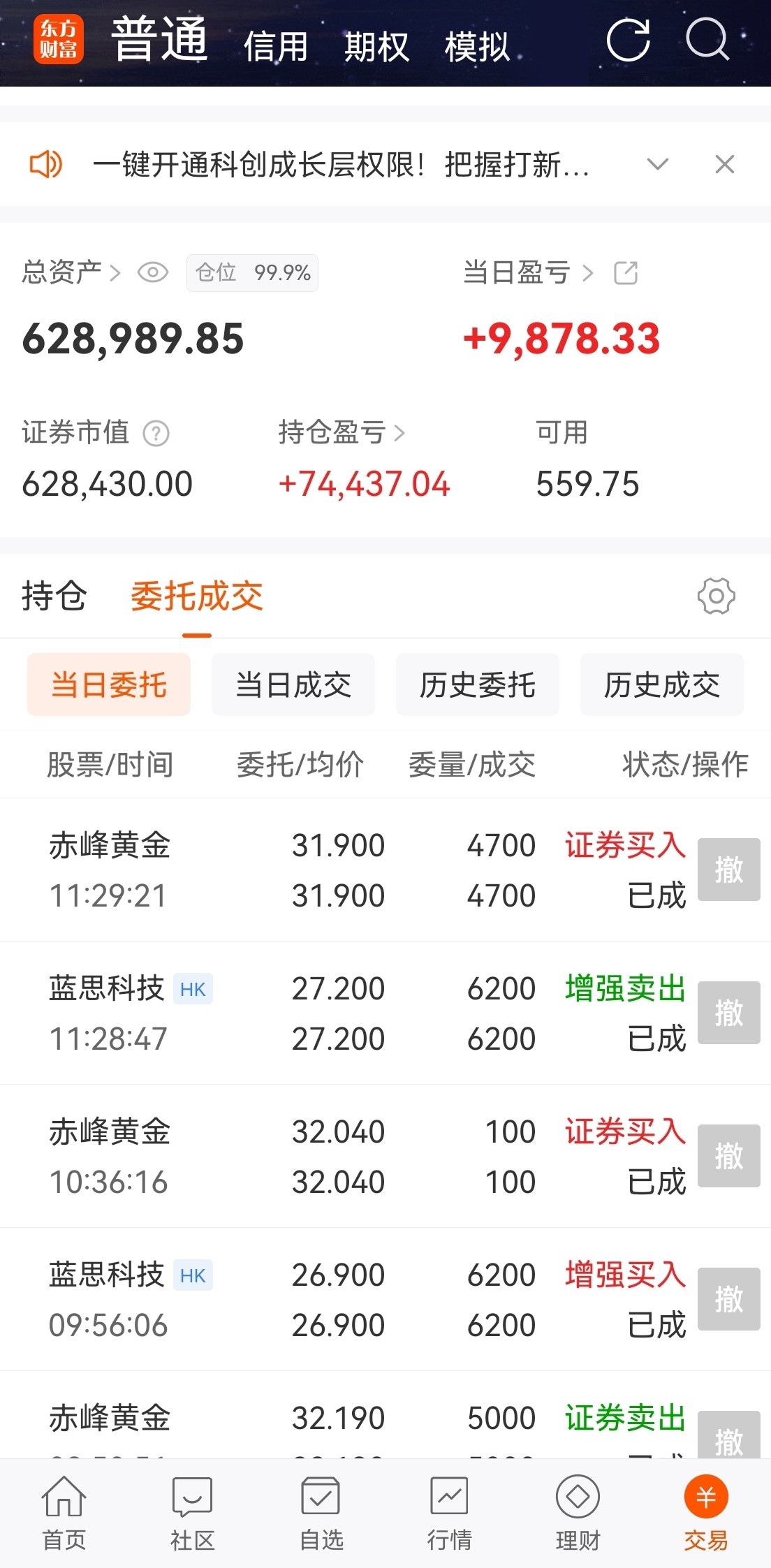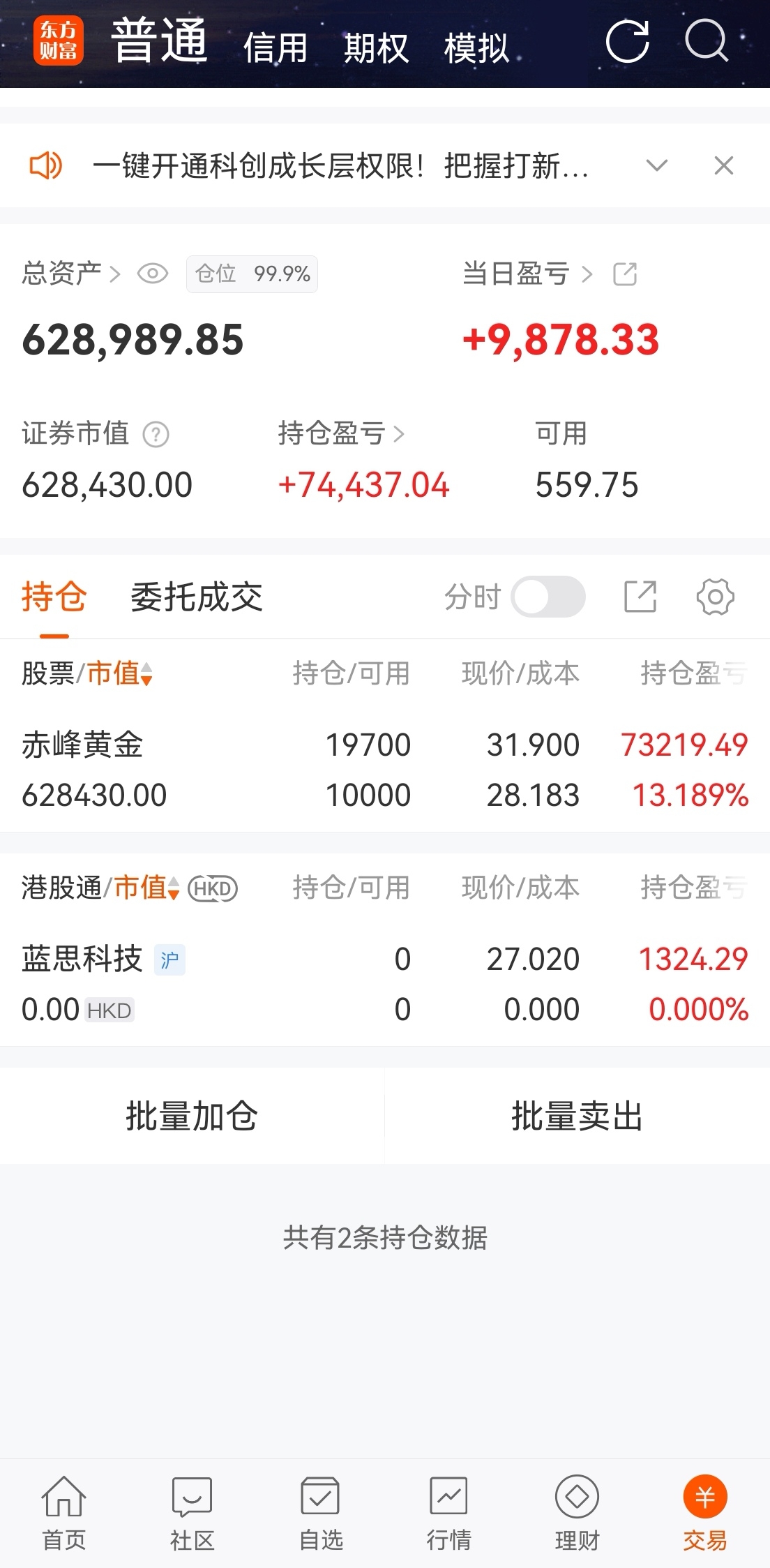 为什么我每次都是赚钱的,然后今天本来我有199手赤峰黄金,现在变成197手了?