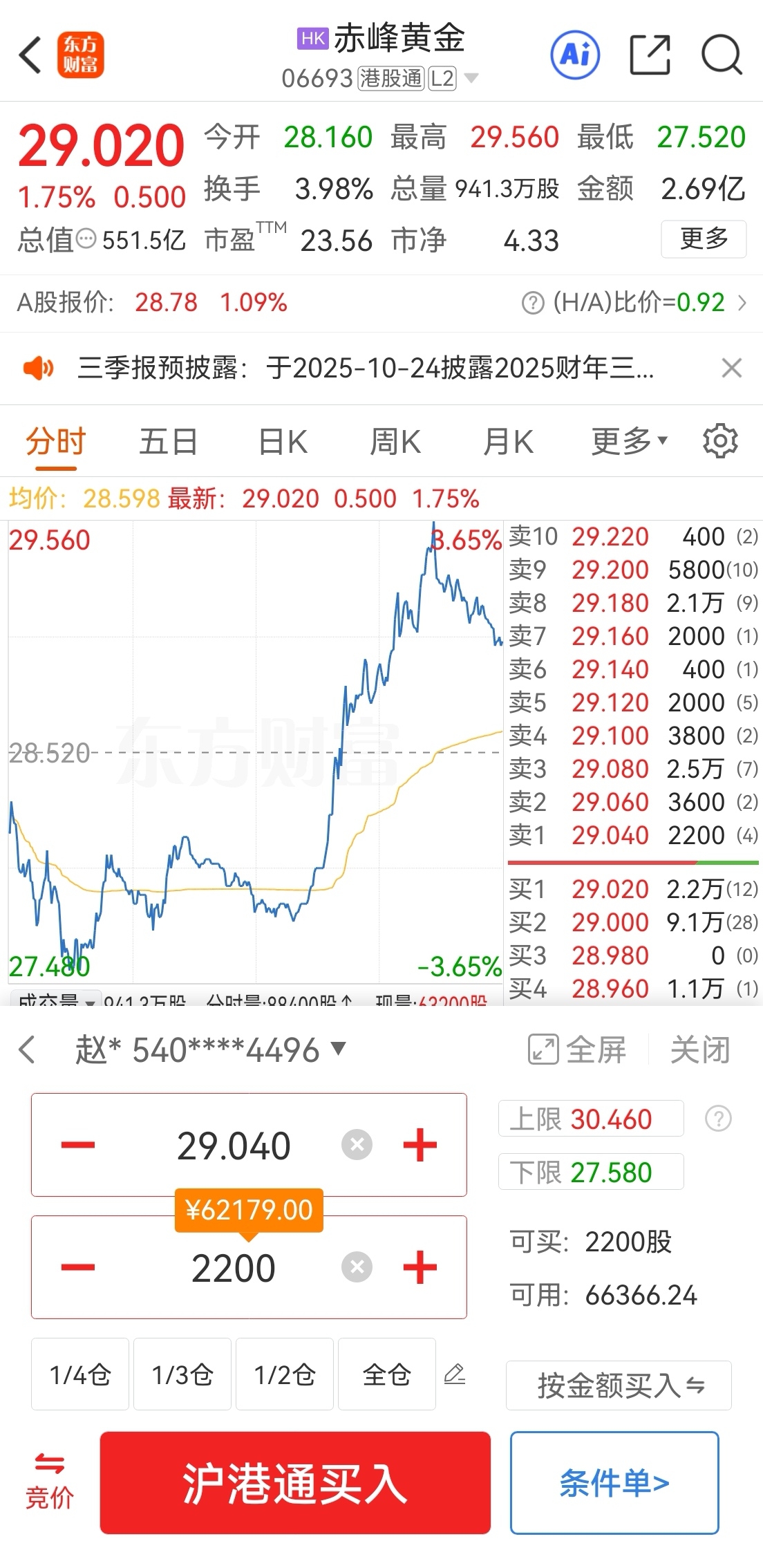 $赤峰黄金(SH600988)$ 质疑地鼠王到底有没有亏钱的,我真是服了,我直接给你看我账户,就算明天不高开,我明天直接竞价买入,根本买不到21200股了,你看才能买几手,如果没亏,那请问我少的这么多手港股赤峰黄金哪去了?我只是说港股不能像A股一样做T,手续费太高了,结果有人还不信。