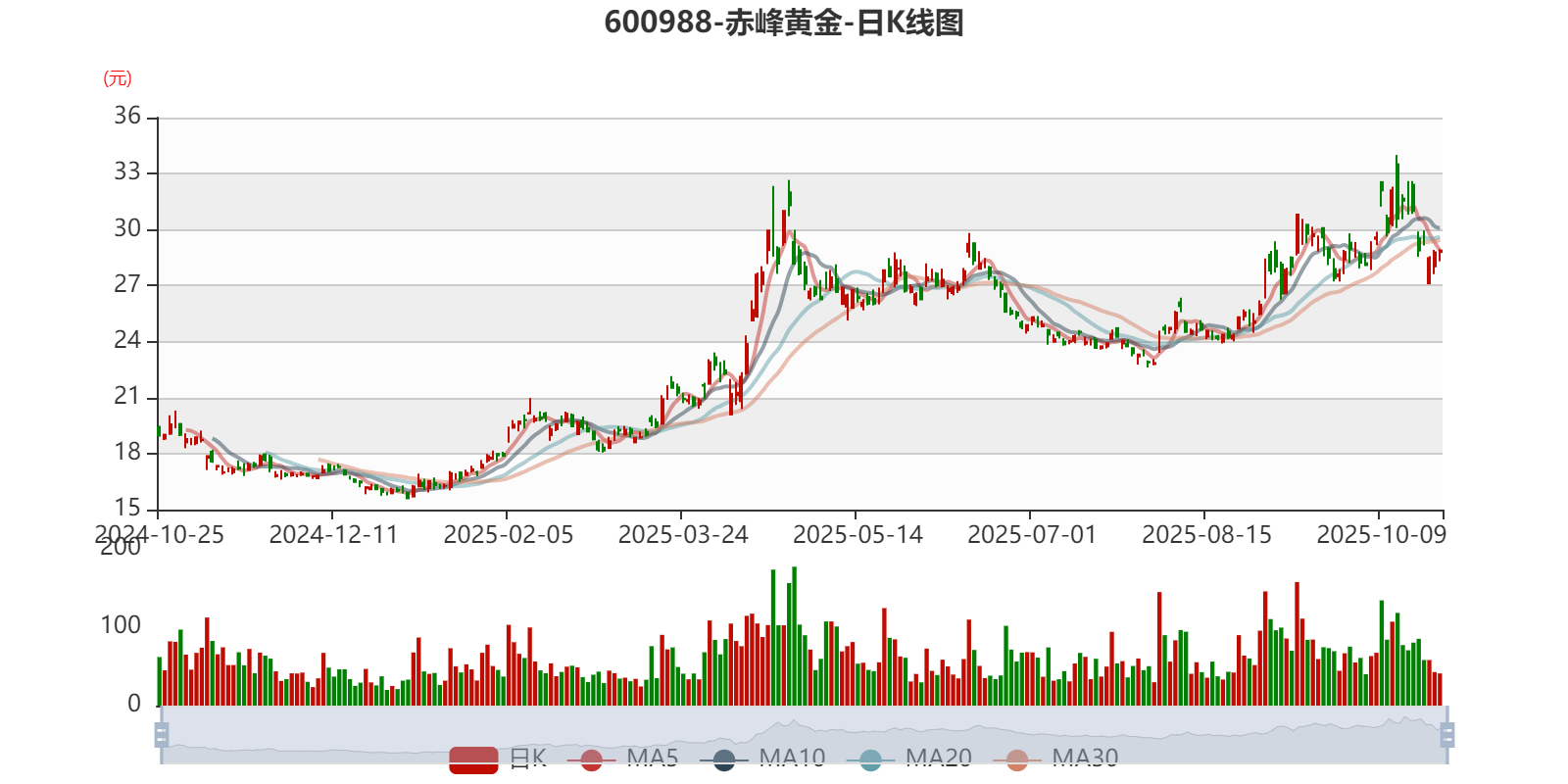 中证智能财讯赤峰黄金(600988)10月25日披露2025年第三季度报告。前三季度公司实现营业总收入86.44亿元,同比增长38.91%;归母净利润20.58亿元,同比增长86.21%;扣非净利润20.26亿元,同比增长95.14%;经营活动产生的现金流量净额为30.36亿元,同比增长51.54%;报告期内,赤峰黄金基本每股收益为1.14元,加权平均净资产收益率为19.23%。