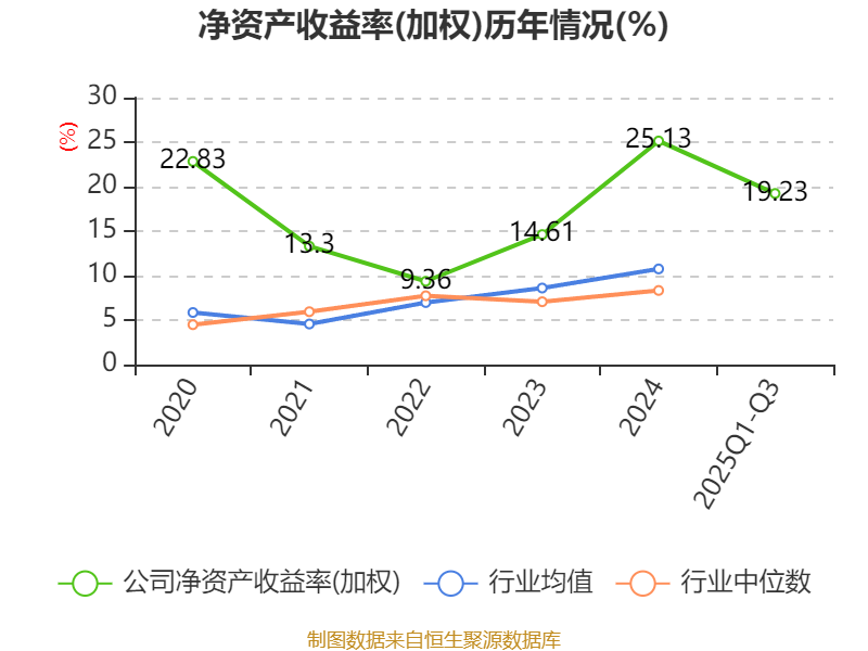 盈利能力方面, 2025年前三季度公司加权平均净资产收益率为19.23%,同比上升2.57个百分点。公司2025年前三季度投入资本回报率为15.4%,较上年同期上升4.9个百分点。