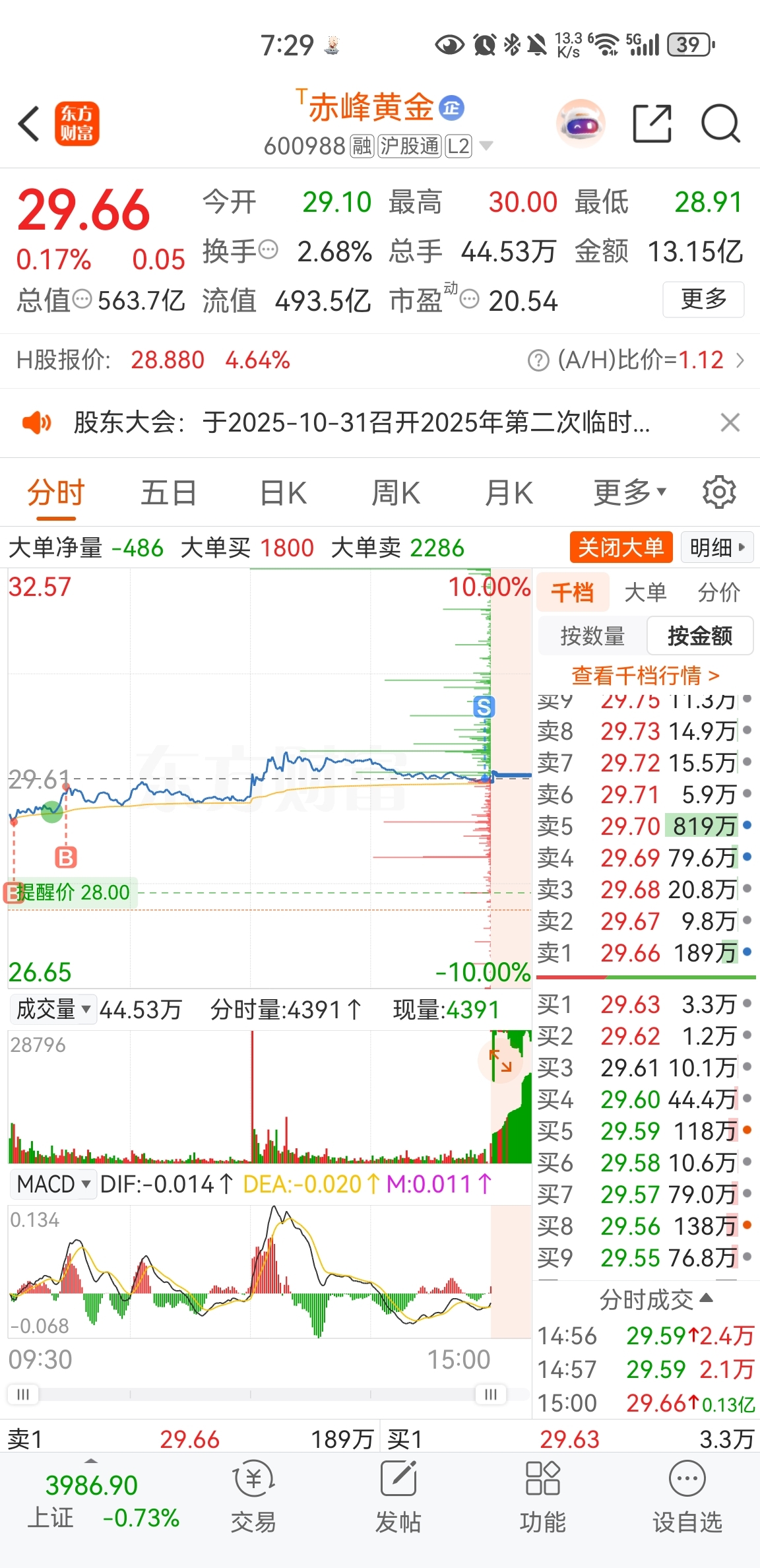 委托标的:赤金买卖方向:29-29.5bb,29.9s笔记:昨天尾盘sss,早上