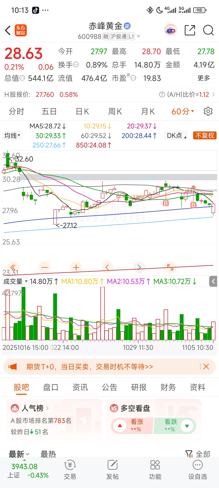 $赤峰黄金(SH600988)$ 双底已现