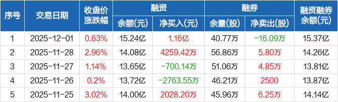 赤峰黄金:融资净买入1.16亿元,融资余额15.24亿元(12-01)
