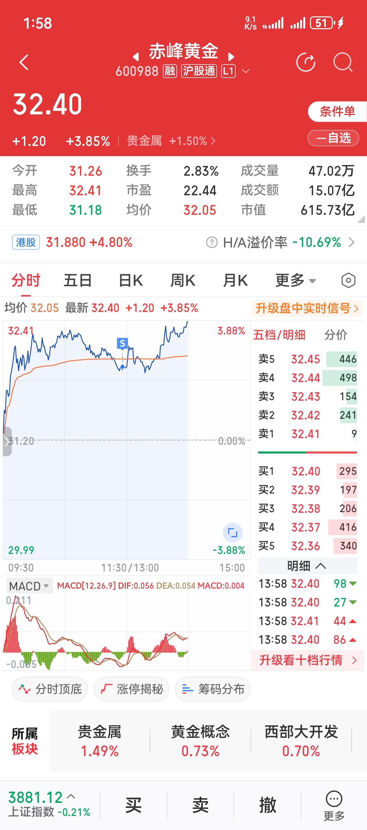 $赤峰黄金(SH600988)$ 上午涨了不卖,以为还能涨,看到跌下来了,赶紧清仓了。主力精准把控我的心理