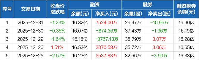 赤峰黄金:融资净买入7524万元,融资余额16.82亿元(12-31)