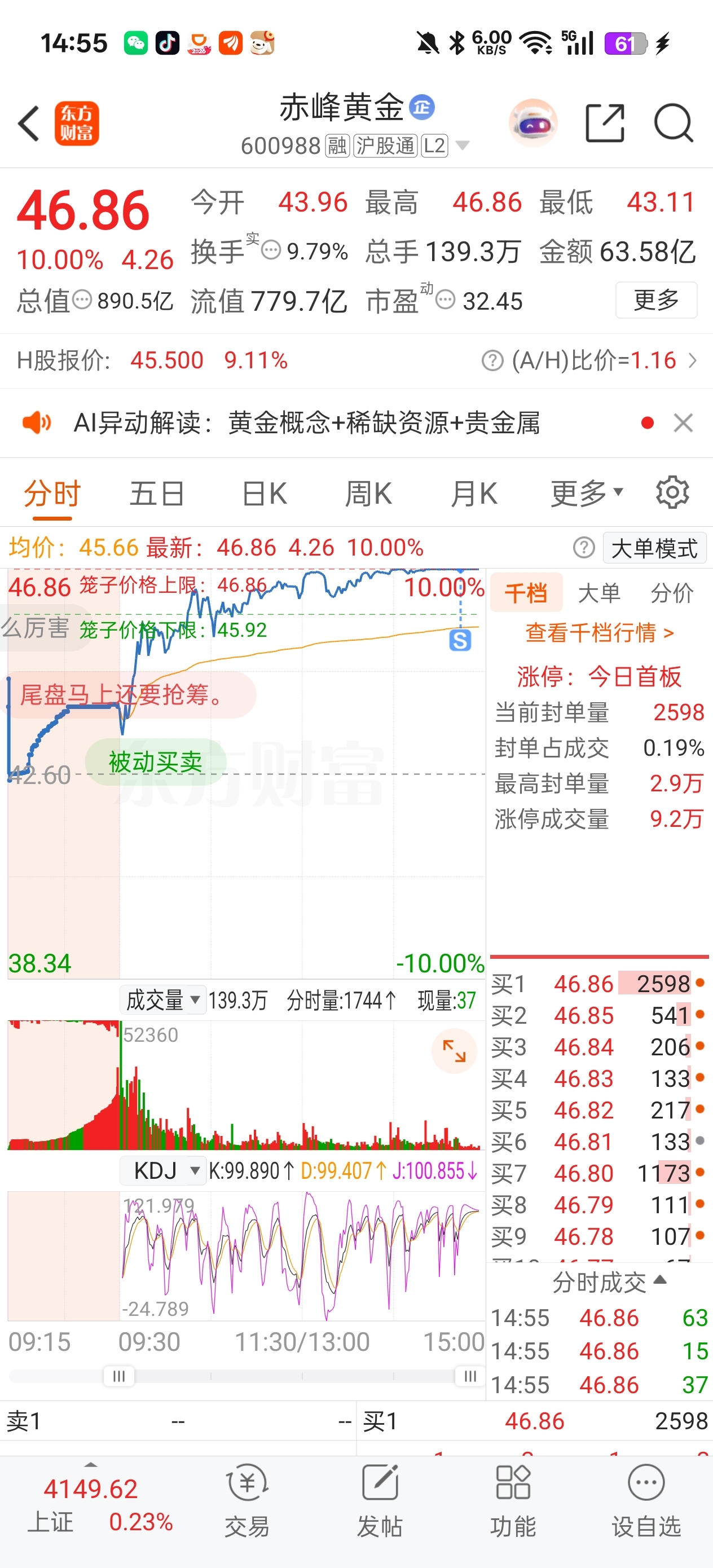 $赤峰黄金(SH600988)$ 涨停板走了,留下的发财,感觉重仓还得是招金西部