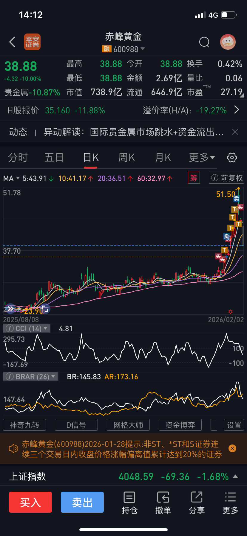 $赤峰黄金(SH600988)$ 赚了45%没跑,又吐了20%出来