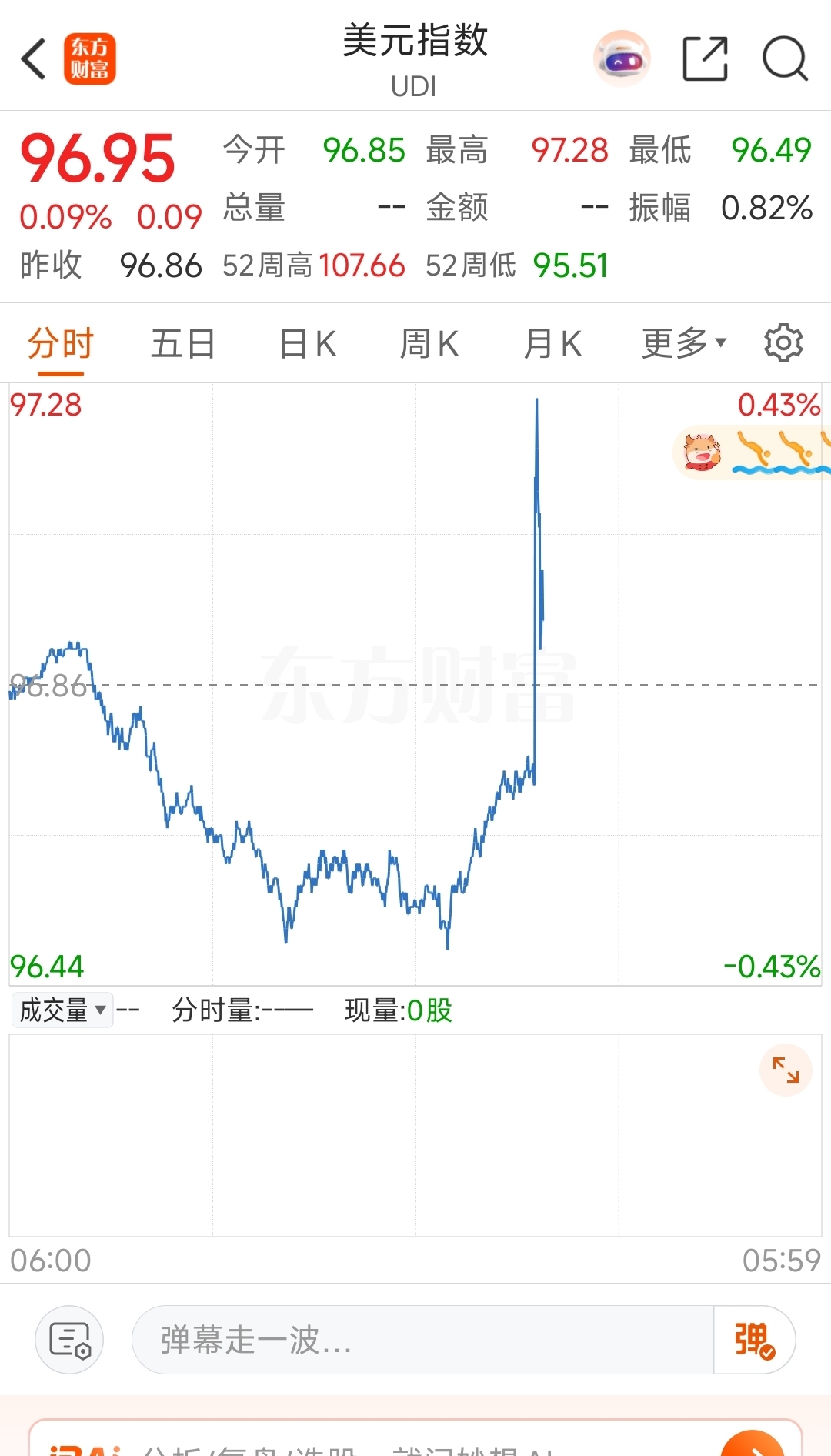 $赤峰黄金(SH600988)$ 美元指数强势上涨,黄金摇摇欲坠!老铁们稳住