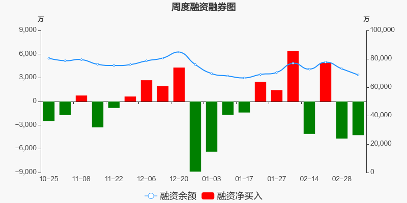 宝丰能源本周(2025/03/03-2025/03/07)累计涨幅达2.66%,截至3月7日最新股价报收16.99元。从增量上来看,3月3日至3月7日融资买入交易规模1.17亿元,融资偿还规模1.6亿元,期内融资净偿还4262.13万元。从存量上来看,截止3月9日,宝丰能源融资融券余额6.94亿元,其中融资余额规模6.87亿元,融券余额规模722.75万元。
