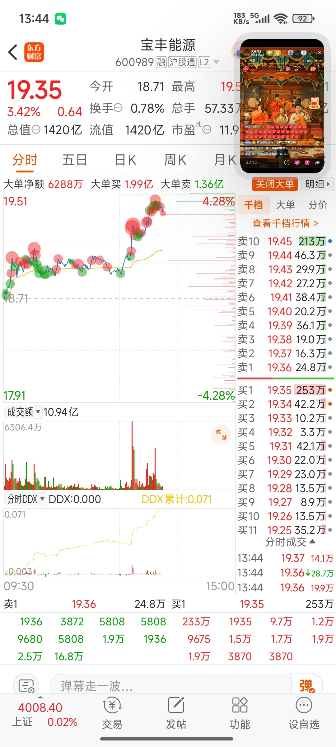 $宝丰能源(SH600989)$ 今天这是要来真的啊,大单往上怼哦