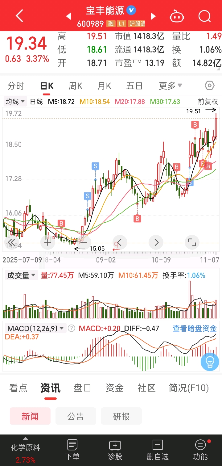 $宝丰能源(SH600989)$ 很久没来宝丰这里评论了。这次在主升前把所有仓位全部拉满了,第一目标位25,到了再减仓,牛市冲到30以上也不是不可能,好好享受主升浪吧