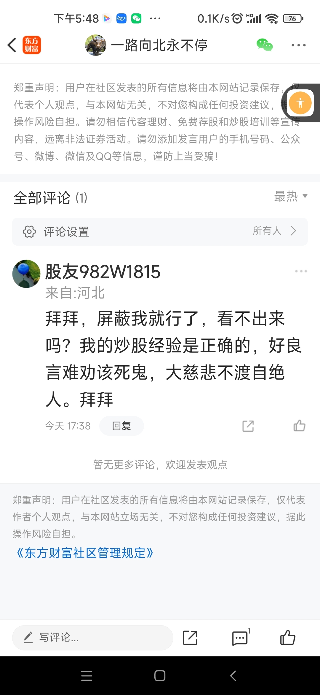 温馨提示: 1.根据《证券法》规定,禁止编造、传播虚假信息或者误导性信息,扰乱证券市场;2.用户在本社区发表的所有资料、言论等仅代表个人观点,与本网站立场无关,不对您构成任何投资建议。用户应基于自己的独立判断,自行决定证券投资并承担相应风险。《东方财富社区管理规定》
