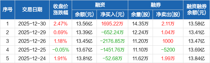 宝丰能源:融资净买入1695.22万元,融资余额13.56亿元(12-30)