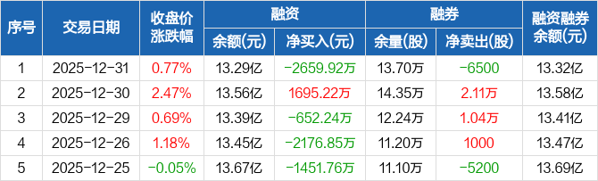 宝丰能源:融资净偿还2659.92万元,融资余额13.29亿元(12-31)