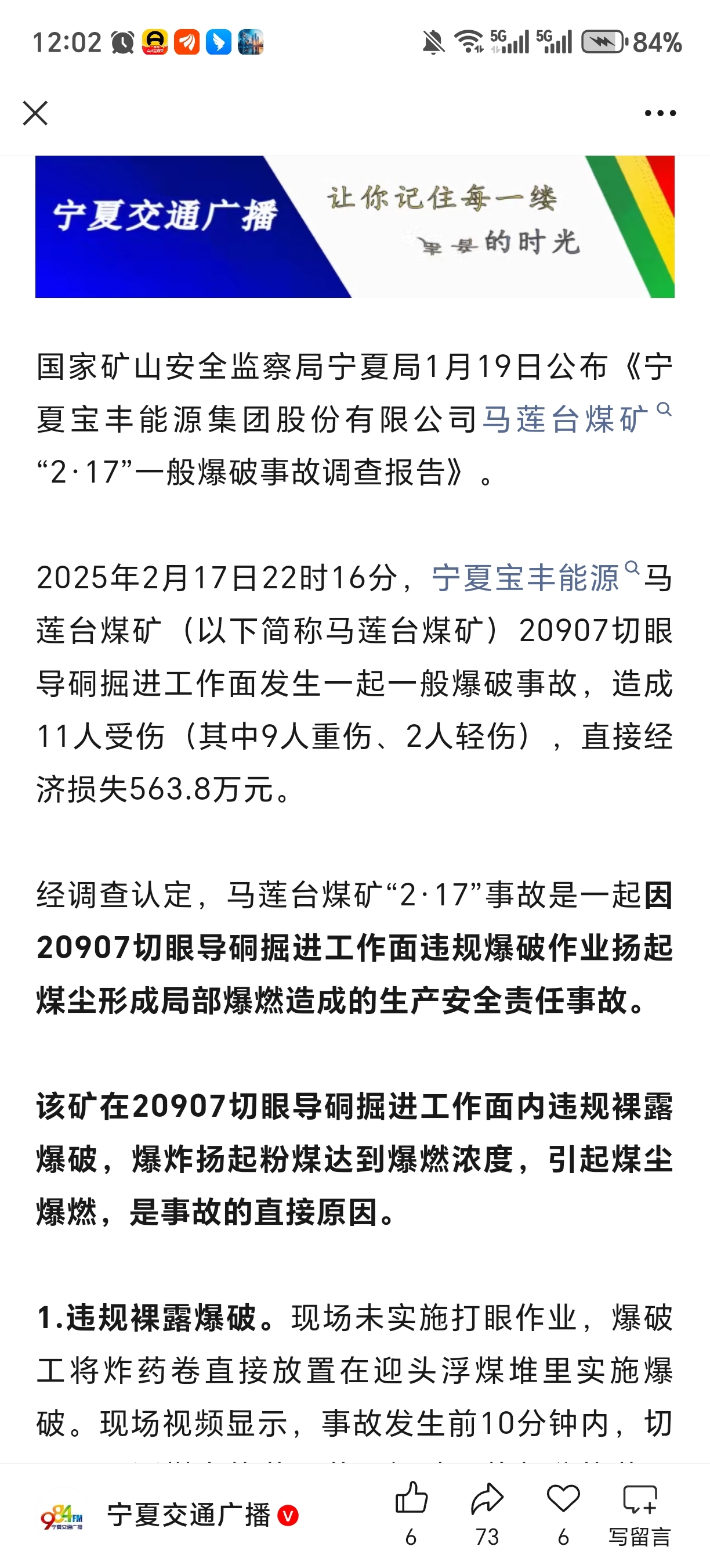 $宝丰能源(SH600989)$ 宝丰马莲台煤矿2.17爆炸事故,结果通报出来了。