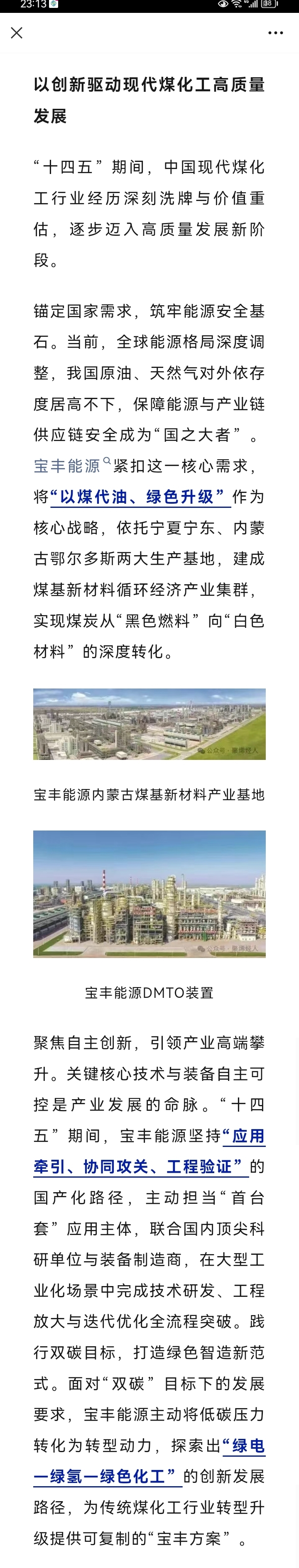 $宝丰能源(SH600989)$ 《人民日报》:【以创新驱动现代煤化工高质量发展】
