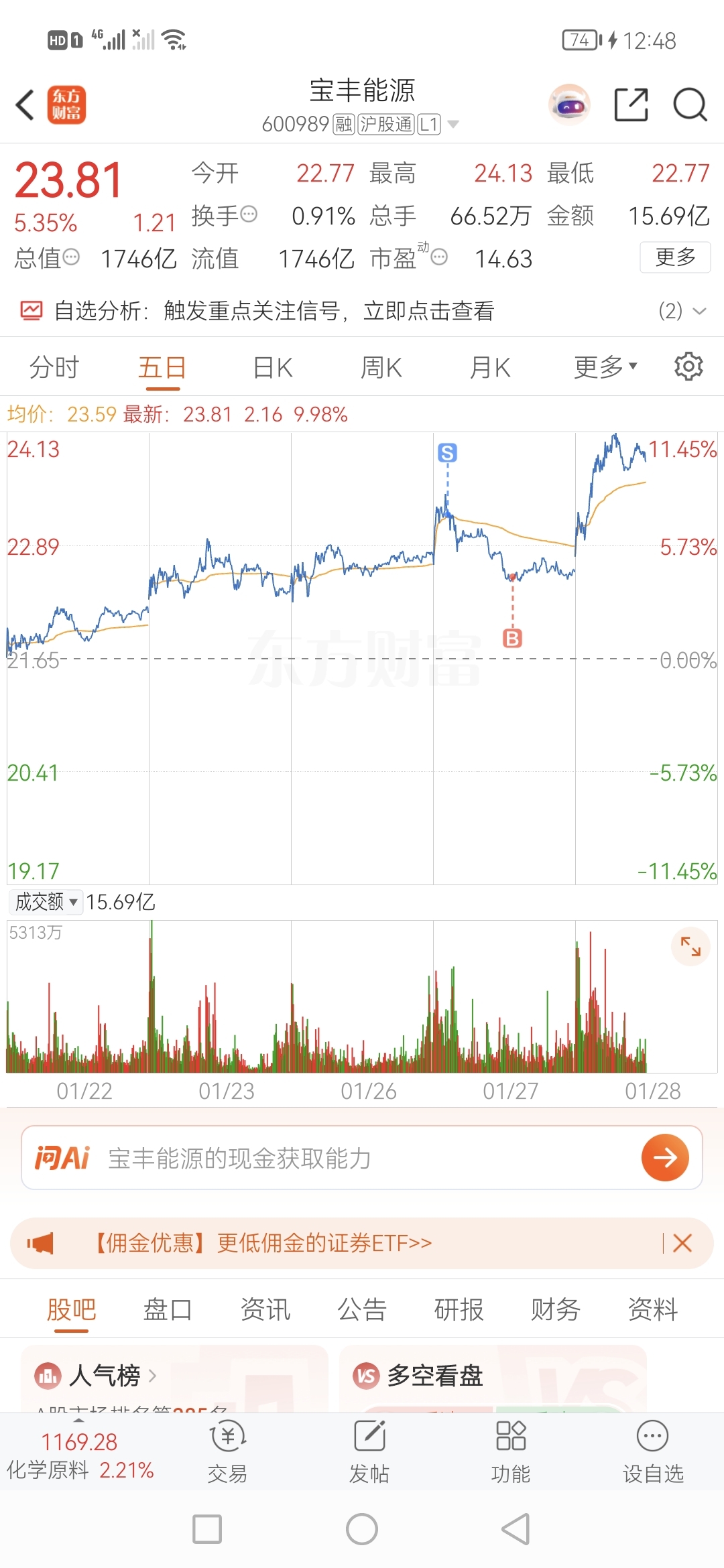 $宝丰能源(SH600989)$ 平时不做t,这下t飞了
