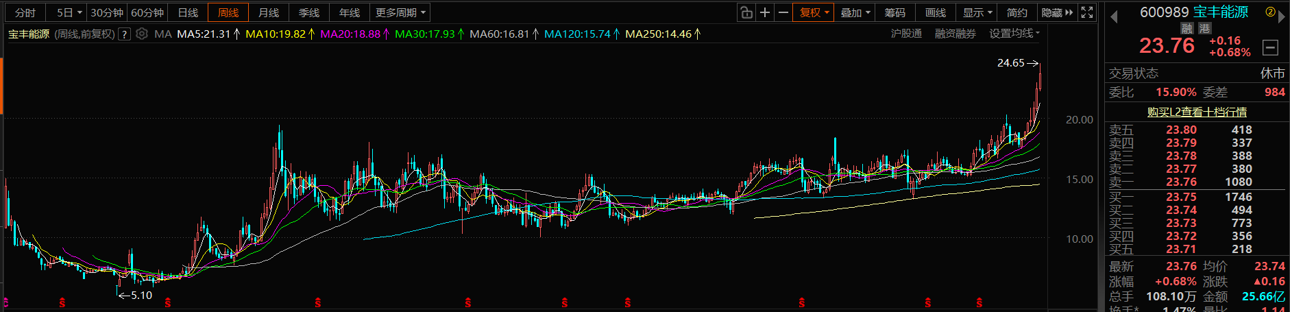 宝丰能源 23.76 突破