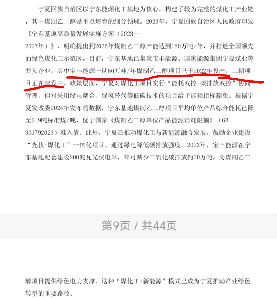 $宝丰能源(SH600989)$  据不可靠消息,宝丰能源准备建设生产乙二醇,投资400E+