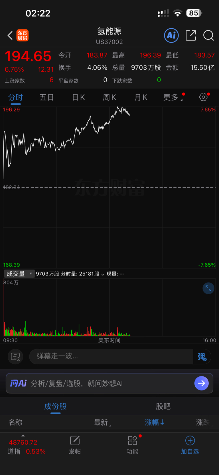 $宝丰能源(SH600989)$ 今天美股氢能源板块大涨7%,作为国内氢能源第一龙头的宝丰能源应该有好的表现