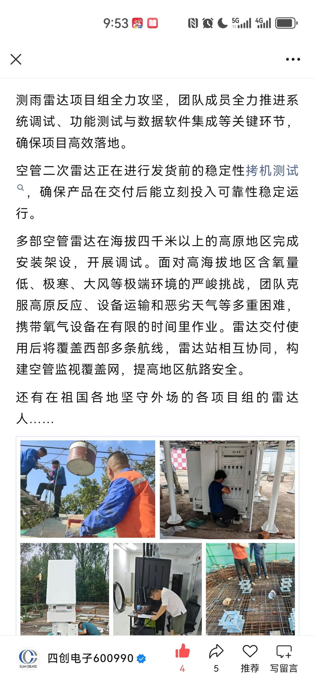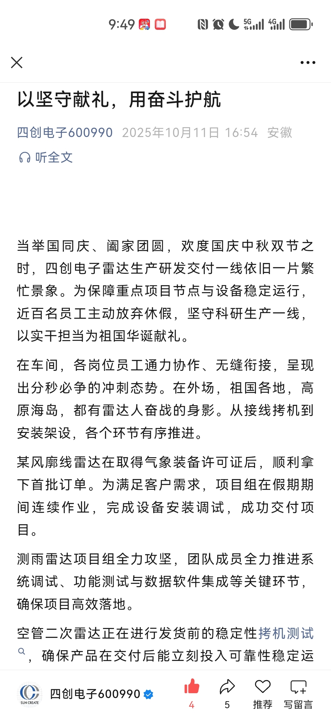 $四创电子(SH600990)$