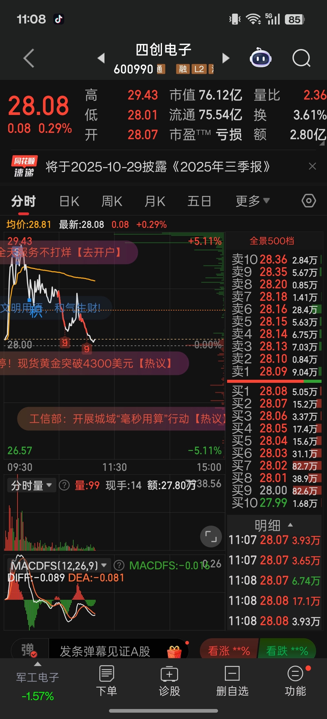 $四创电子(SH600990)$