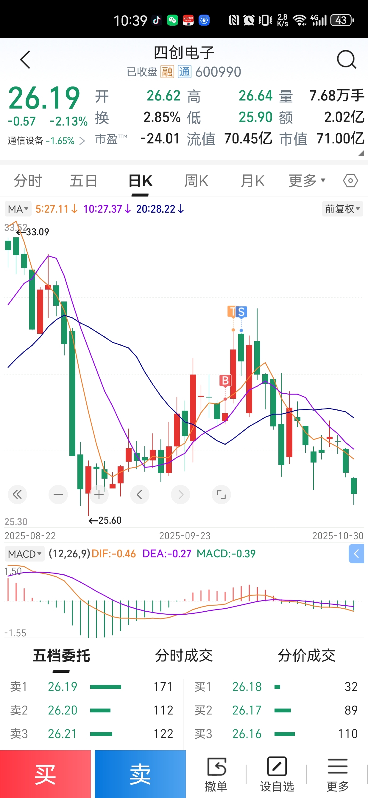 $四创电子(SH600990)$ 回来看看,吓得我哆嗦