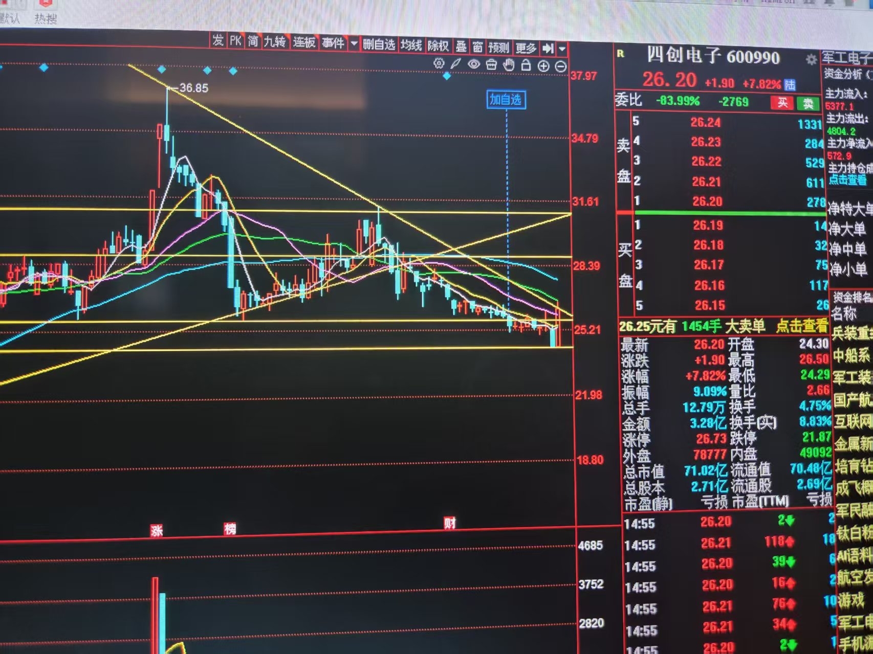 $四创电子(SH600990)$ 无量跟随板块涨了一天,周五介入的货尾盘已出,原因是并未起量突破下跌趋势线,目前主力还处于连续三个月的出货阶段,等有连续日k线拿筹码再考虑回来