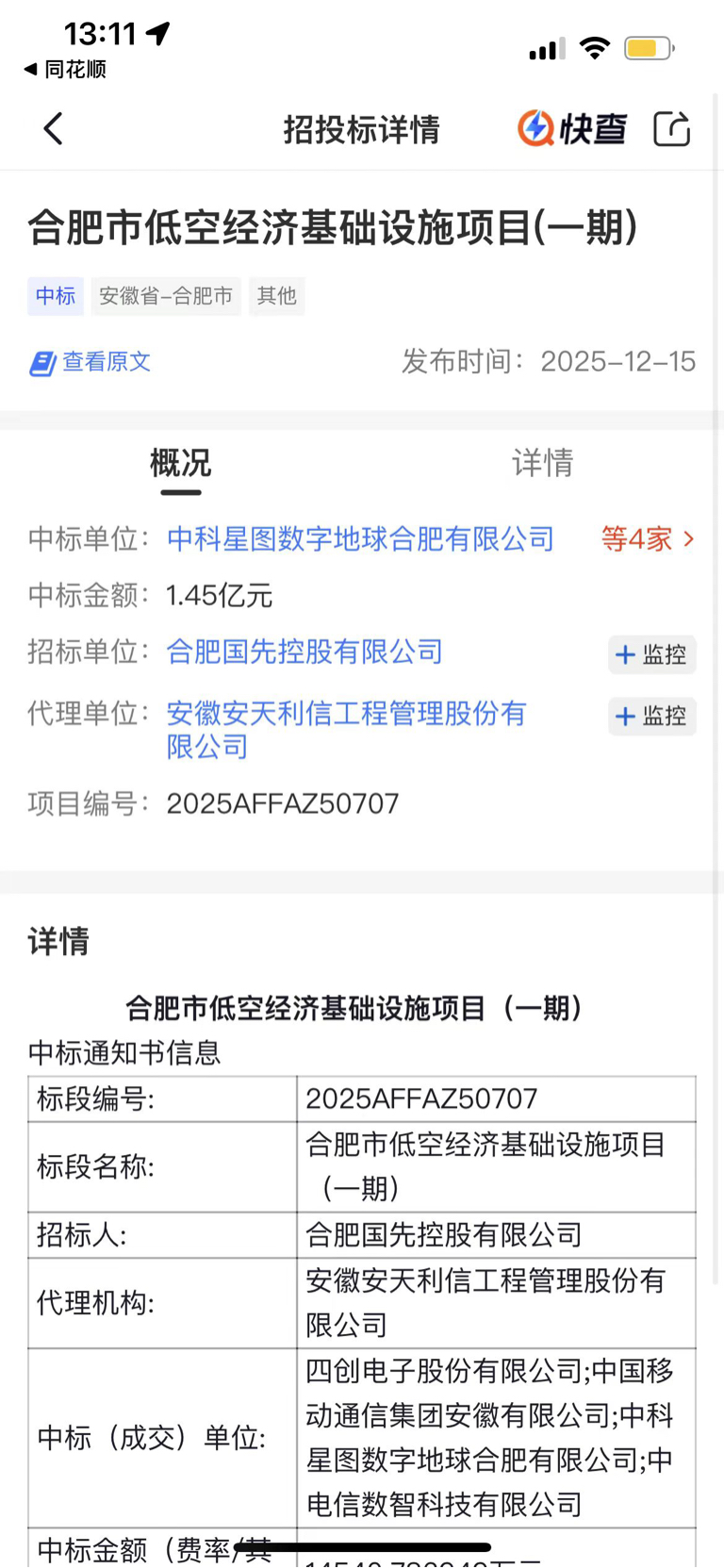 $四创电子(SH600990)$ 中标了